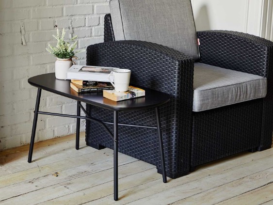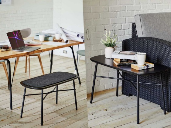 Las revistas y las bebidas se pueden colocar en la parte superior ancha del banco Dos como una mesa de café. Pero también se puede utilizar como un banco delgado.