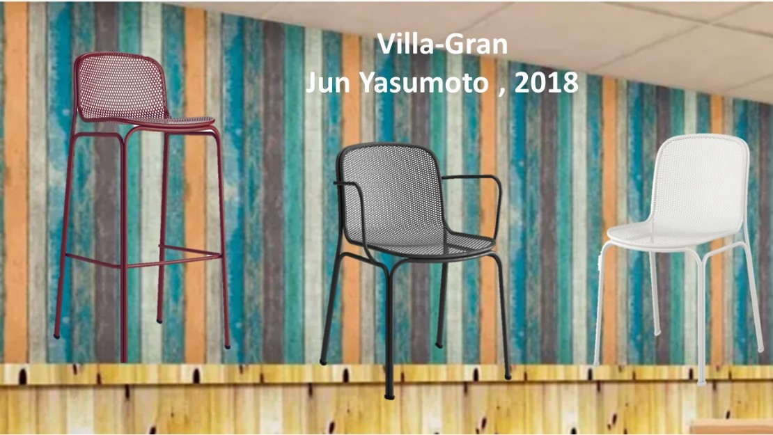 VILLA-GRAN 1 es una silla con estética contemporánea, inspirada en los asientos de exterior de las terrazas parisinas: La rejilla metálica, formada por una chapa estirada y preformada, se combina con cuatro elementos en tubo de acero, formando así una estructura ligera y a la vez sólida.