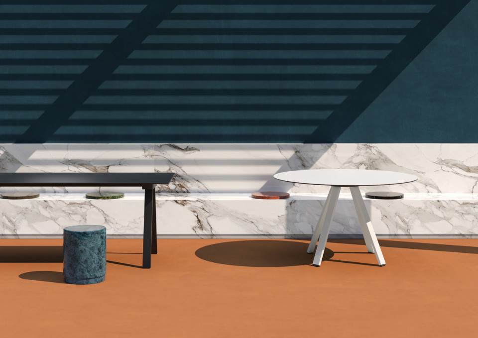 El modelo con base central, con sobre redondo o cuadrado, se adapta fácilmente a contextos públicos como bares y restaurantes, o privados como comedores de aspecto contemporáneo. La versión rectangular, de mayor superficie, en cambio es una excelente opción para salas de estudio, de reuniones y comedores, donde es necesario acomodar a más personas.